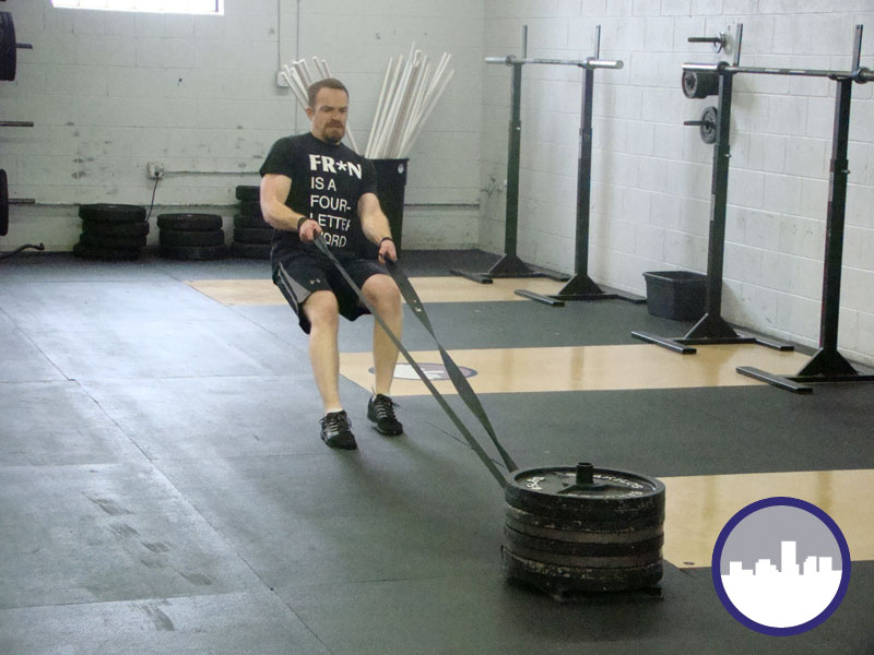 Blaine looking good in the Fran shirt from hopper apparel with that crap ton of weight on the sled.